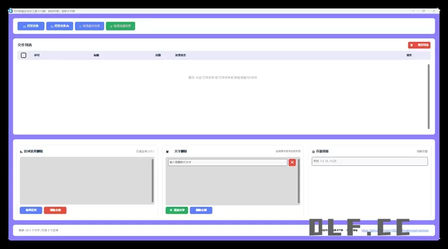 PDF批量去水印工具一款功能强大、界面美观的PDF批量水印工具,支持区域删除、文字删除、页面排除等多种去水印方式。