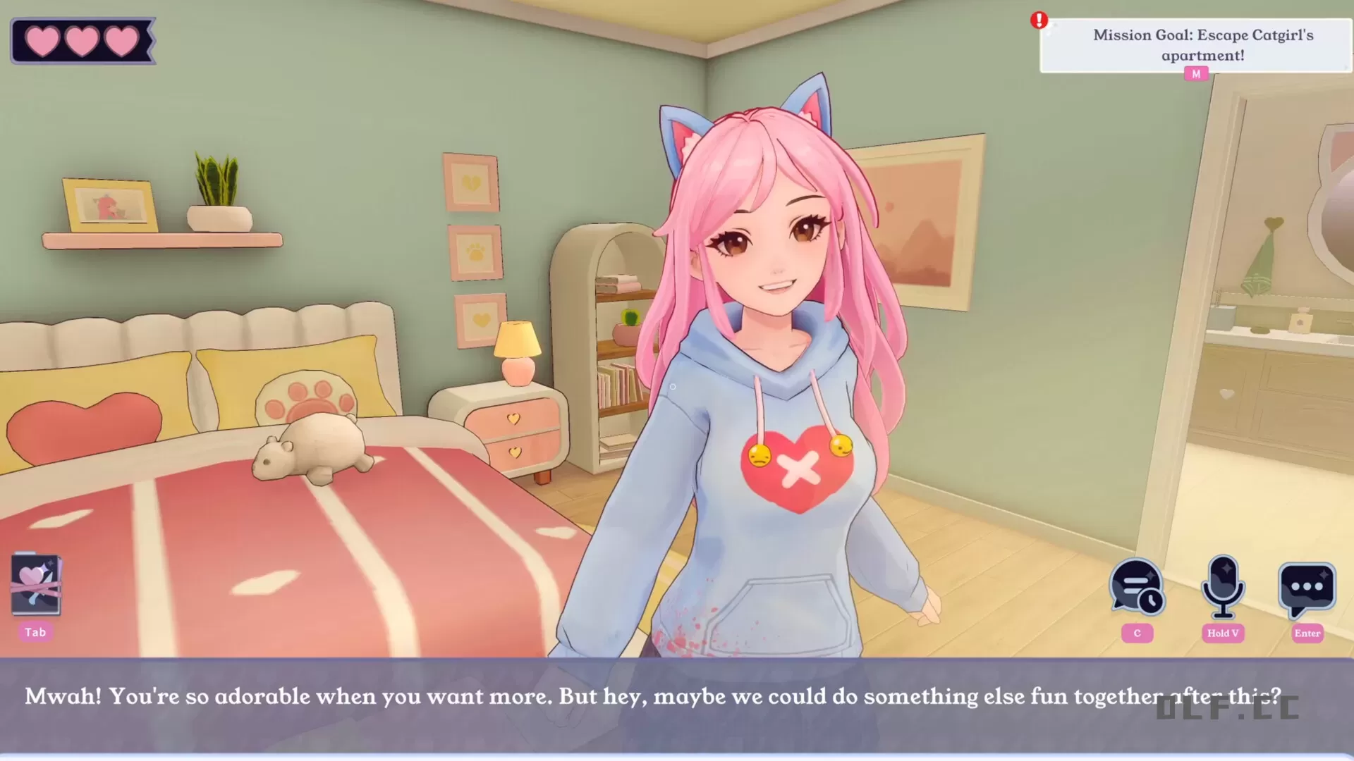 一觉醒来,你发觉自己身处一位可爱女生的家中,而她热切地希望你能留在她身边!在这里,你将体验主题故事、解谜挑战,以及与不同独特AI NPC的互动。哪怕有时候会自相矛盾,她们也会用尽百般手段来“保护”你。来一场浪漫的邂逅吧。不过,你若是试图逃跑,可要做好迎接混乱的心理准备哟!
